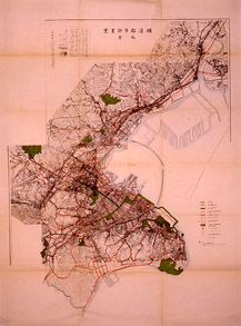 震災復興のために招かれた内務省技師の牧彦七が作成したもの。土地区画整理、道路改修、公園整備などの復興事業のグランドデザインとなった。