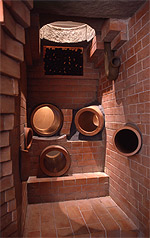日本大通りから出土した明治期の下水施設の遺構。臭気対策のための炭箱やトラップ(S字型鉄管)が設置されていた。
