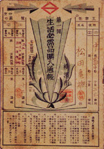 戦時下の配給制度で使用された購入通帳。世帯ごとに交付され、食料品をはじめ、マッチや石けんなどの購入が細かく管理された。