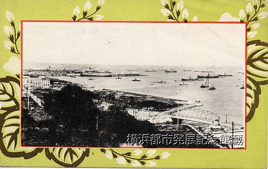 1928年12月4日、昭和天皇は即位行事の一環として横浜海上で海軍艦船を親閲した(大礼観艦式)。本絵葉書はこれを記念して発行されたもの。当日の横浜は晴れ渡り、市内の人出は100万を数えたという。宛名面に「大礼観艦式記念 横浜市」と印字され、切手貼付欄に横浜市の市章が印刷されている。青雲堂刊行。