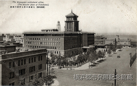 横浜の名所を写真で案内した『横浜名勝』(横浜銃後奉公会、1939年)には「日本大通 公孫樹の並木が黄ばんで道を行く外国人の外套にそこはかとなく散る頃となつた 異国情緒豊かなこの港頭の大通りに空高く日章旗を翻して非常時らしい風景を見せてゐる大殿堂は神奈川県庁である」と記されている。