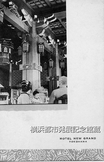 「大食堂は純日本趣味を取り入れ藤原時代の様式に則り殿堂風の広間で東洋芸術の粋たる榊組蟇股を配らひ、丈余の腰羽目と二丈余の大柱はシツクリ調和して雄大なる感を与へ優に二百人の饗宴が出来る」(『横浜貿易新報』1927年12月1日)