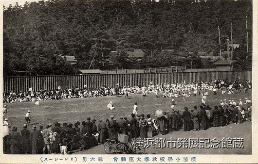 1925(大正14)年10月15日におこなわれた横浜小学校秋季大運動会の記念絵葉書。松島写真館発行。