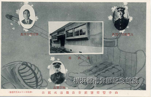 山手警察署庁舎改築落成記念 演武場・友部前警察部長・加藤署長・蔵原警察部長