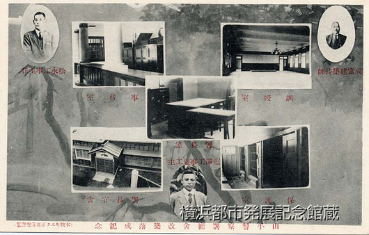 山手警察署庁舎改築落成記念 署長室・訓受室・保護室・事務室・署長官舎・成富建築技師・塩沢工事施工主・松永工事主任