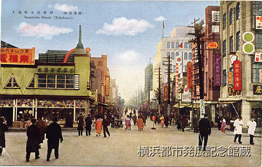 二時から三時半になると四方から集る生徒が喫茶店、若しくは活動館、有隣堂、デパートと入つて行く。二時、三時、四時、五時、斯うして次第に伊勢佐木通りは盛り場らしく姿を見せて来る。この頃が一番通りの蓄音器店がやかましい、レコード何枚か取かへる中に店先が一杯の人だかりとなる。すると一斉に五時から六時にかけて活動館の入替りとなつてまぶしそうに、が何かまだ夢を見てゐる様に人々が吐き出されて来る。明治製菓、有隣食堂、不二家五色モナカ等の喫茶店やデパートの食堂はこれらの人で一杯になつて来る。そうしてあちらの隅、こちらの隅で、一団の学生や女学生が笑ひ興じてゐる中たまにロマンテイツクなランデブーを開いてゐる二十一の学生と十八九の女学生がある。」(青木町三「ヨコハマ・オン・パレード 伊勢佐木町界隈の素描」『大横浜』1930年第6号)