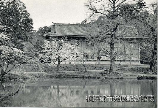 「復興金沢文庫」は御大典記念事業として1930(昭和5)年8月8日に開所式をあげ、文庫内では古文書・典籍・仏像等が陳列された(『横浜貿易新報』1930年8月9日)。『金沢新庁舎落成記念』(1971年6月)の絵葉書セットの1枚。