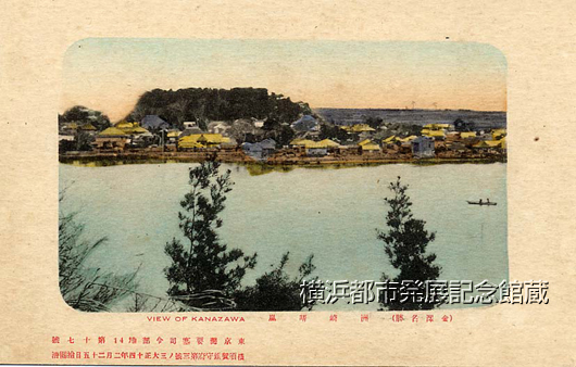 「(金沢名勝)」と題された絵葉書セットの1枚。「東京湾要塞司令部地41第十七号 横須賀鎮守府第三号ノ三大正十四年二月二十五日検閲済」とあり。