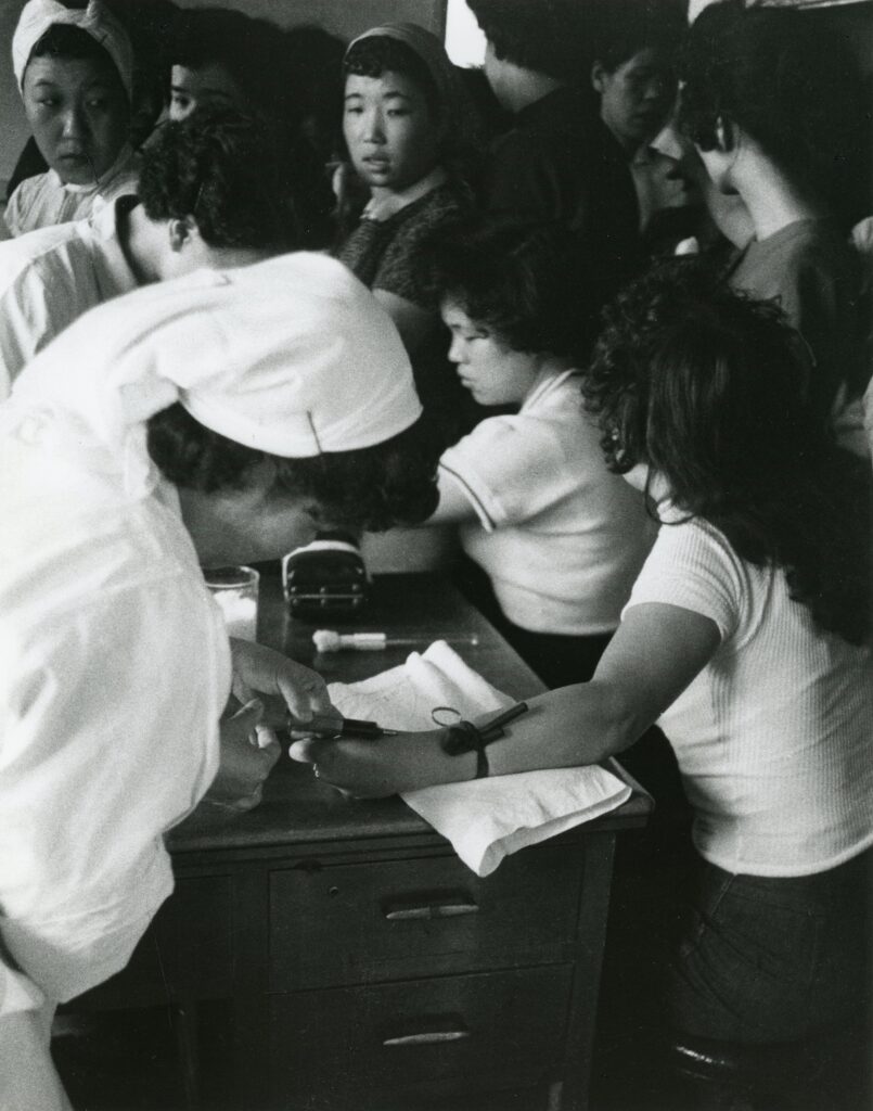 1928(昭和3)年に神奈川区の酒問屋の家に生まれ、戦後、後に夫となる奥村泰宏と出会って写真家の道を志す。1956(昭和31)年に「働く女性」展を開催して好評を博したほか、翌年には横浜の赤線地帯で働く女性達の姿をカメラに納めた写真エッセイ集『危険な毒花』がベストセラーとなり、戦後の女性写真家を代表する一人として注目を集めた。2019(令和元)年逝去。常盤の写真群は、2018(平成30)年に常盤の姪にあたる栗林阿裕子氏によって寄贈された。