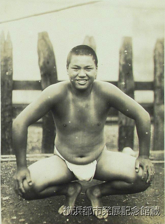 中区内田町六丁目八百屋の息子で西村文雄君は満十五才の少年だが、身長五尺二寸五分で体重廿一貫余といふ珍しい怪童。幼少から角力が大好きで、近所若衆角力には何時も出て特に五人抜きは大得意である。廿貫目位のものは平気で運ぶといふ豪傑ぶりで、はやく本當の角力になりたいと未来の横網(ママ)を望んで国技館を目指して頑張つてゐる。